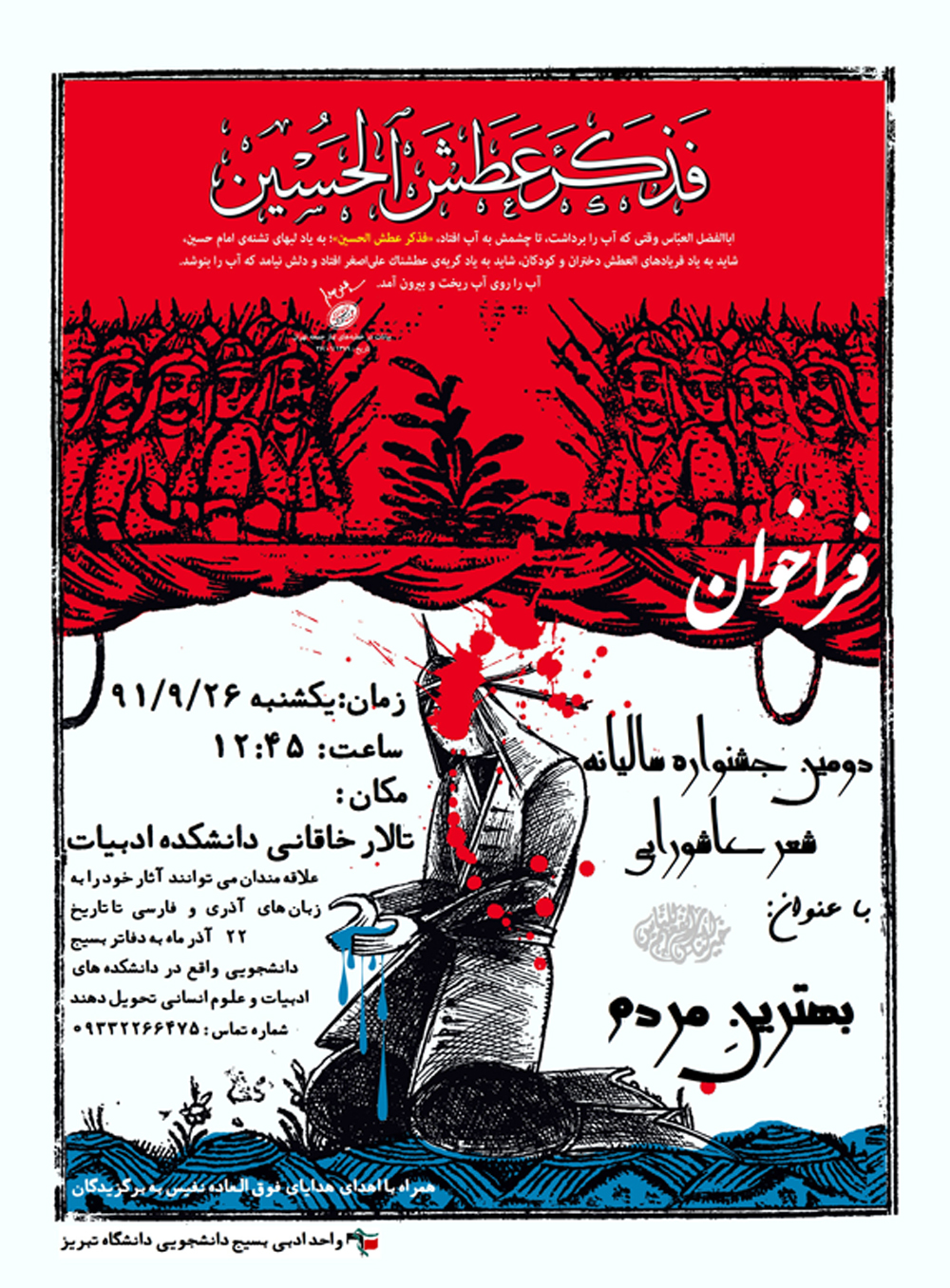 تبریز بیدار : دومین جشنواره شعر عاشورایی در دانشگاه تبریز برگزار میشودخبر فارسی : دومین جشنواره شعر عاشورایی در دانشگاه تبریز برگزار می شود